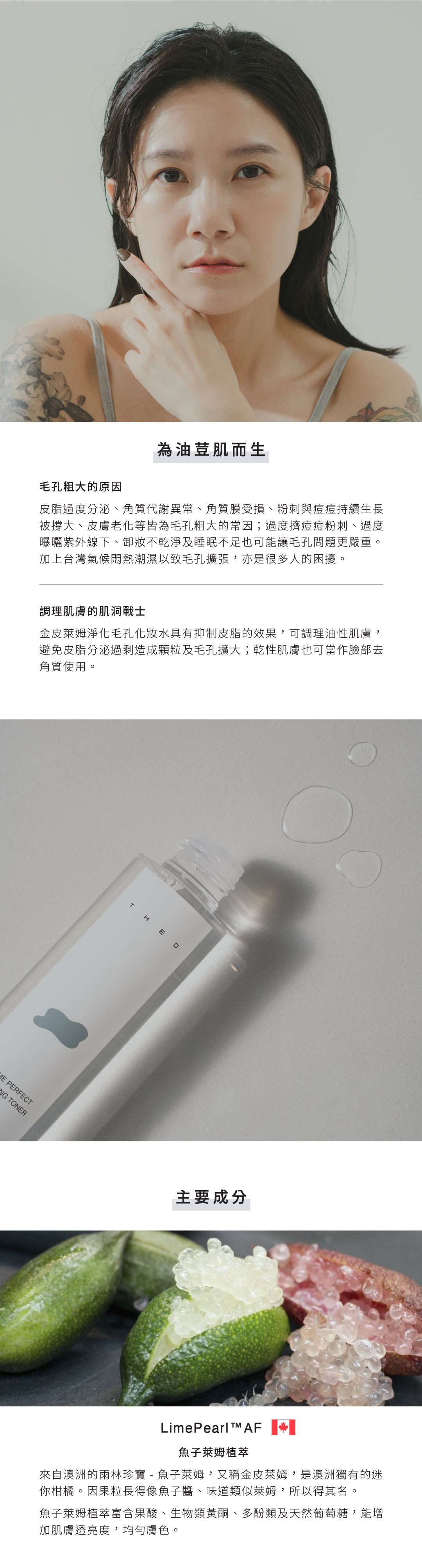 淨化油荳肌|魚子萊姆植萃 Lime Pearl™ AF & 雙樹痘不擾 Trikenol Plus