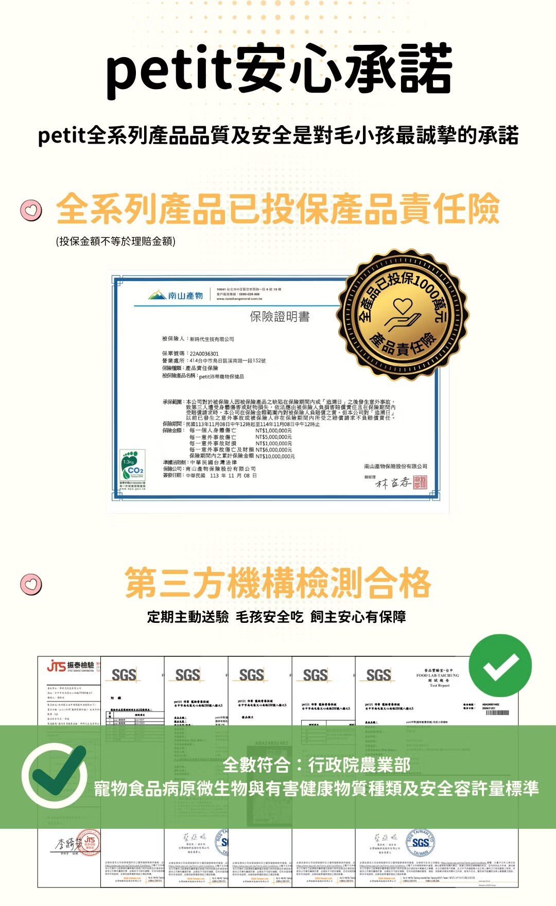 本產品已投保產品責任險,並完成行政院農委會寵物食品申報