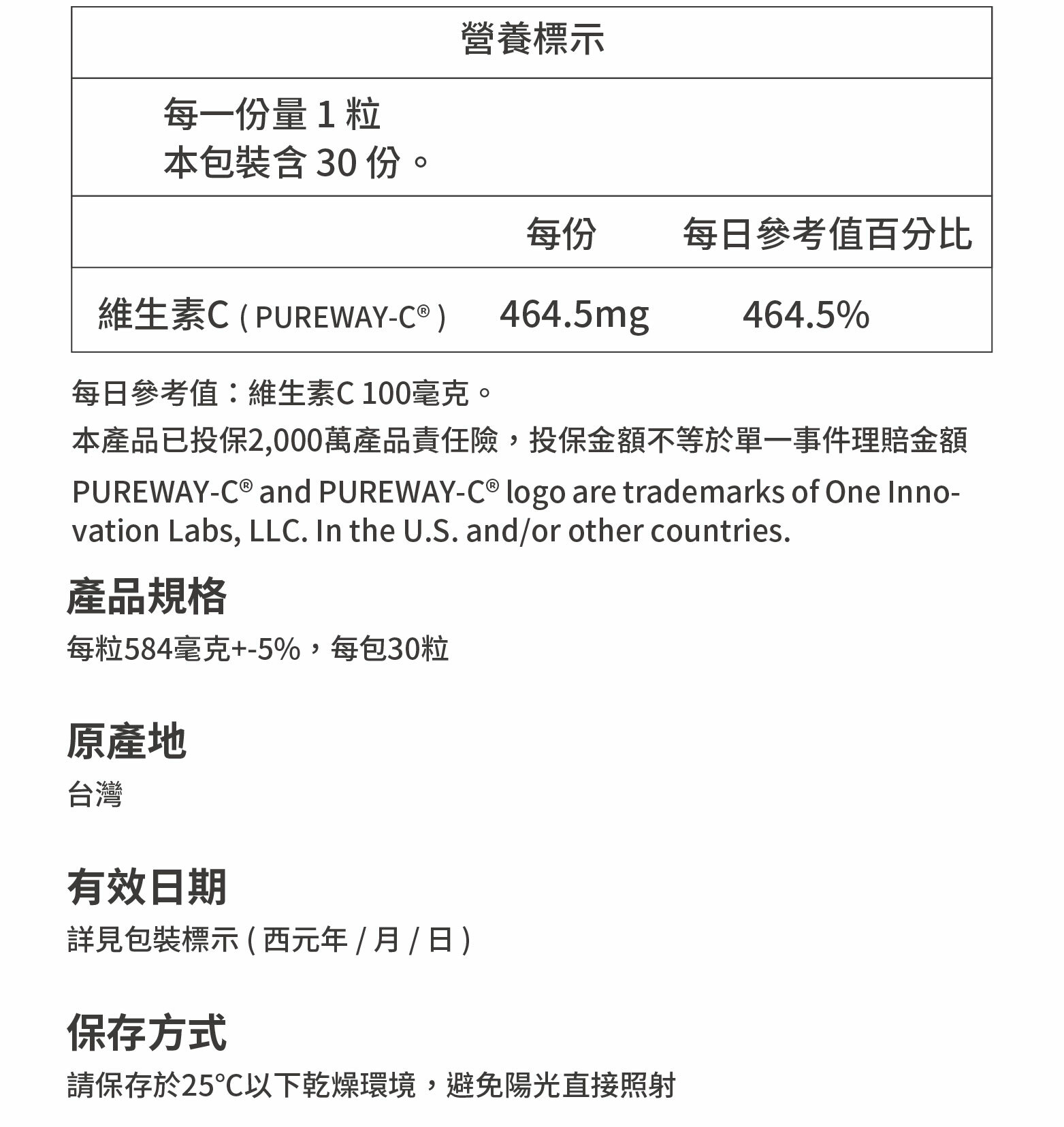 PUREWAY-C®複方維生素C ( 維生素C、柑橘萃取物、米糠粉 )