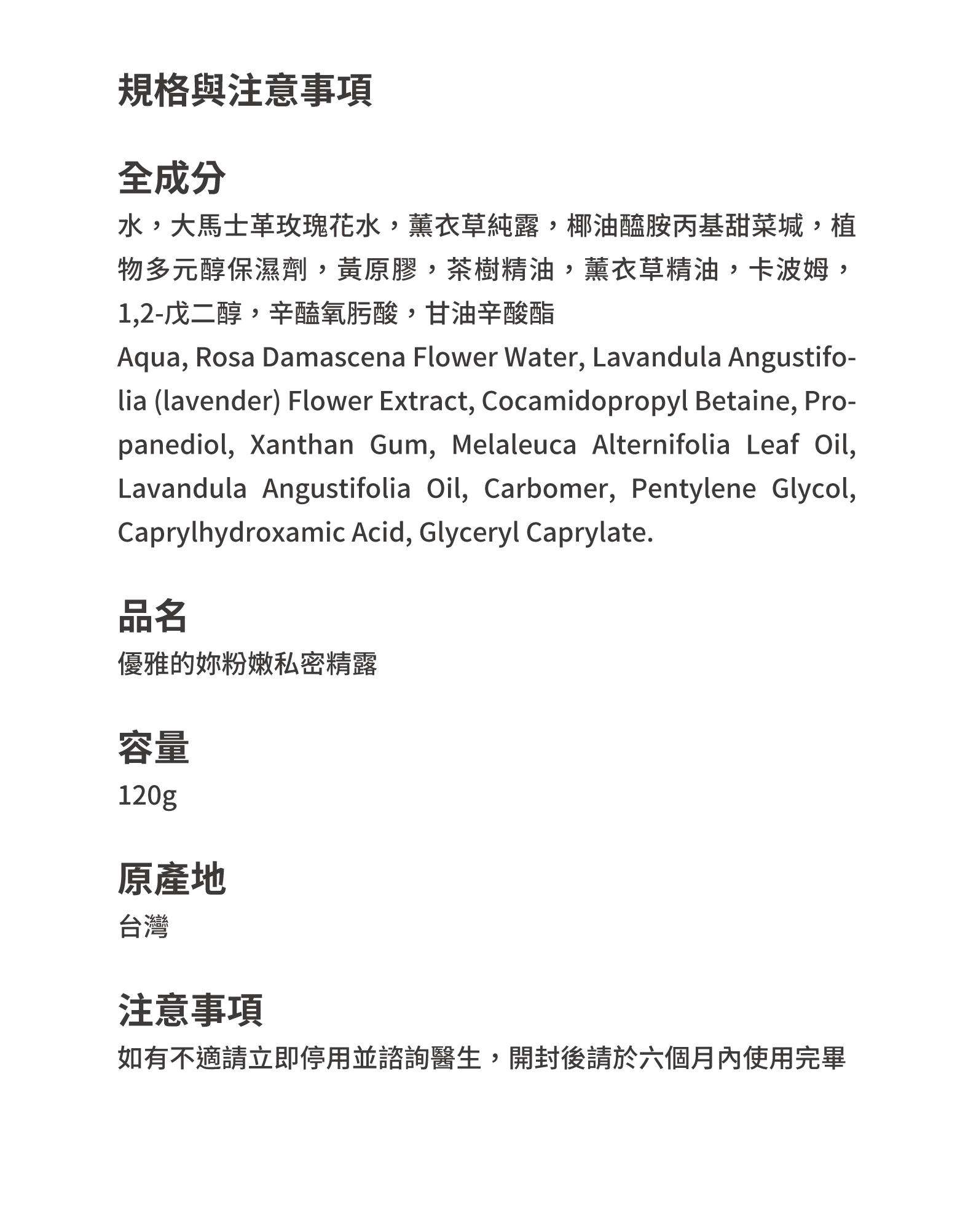 ✓ 高濃度玫瑰花水添加,維持私密區域柔嫩健康